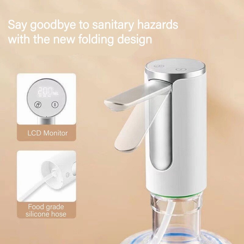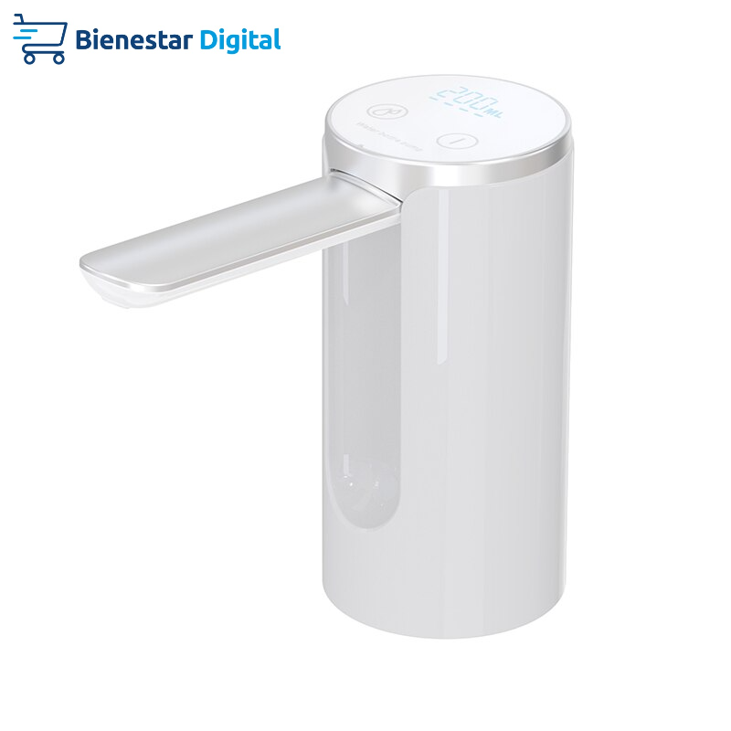 Dispensador de Agua Eléctrico – Automático con Batería Interna de color blanco. Puedes usarlo con un bidón de 20 litros o de 7 litros. A diferencia de los dispensadores de agua regulares, este se va separado del bidón de agua. Eliminas la contaminación visual de la caja o el bidon de agua. Es Excelente para tener agua en cualquier parte de tu casa sin malograr el estilo de los espacios. Puedes usarlo en la Cocina, el escritorio o en la Mesa de noche. Incluye: -Dispensador de agua (base y caño) -Manguera de silicona de 1 metro 20 cm -Cable de carga USB-C -Manual de uso  Pagos: Aceptamos Contra entrega en Lima.
